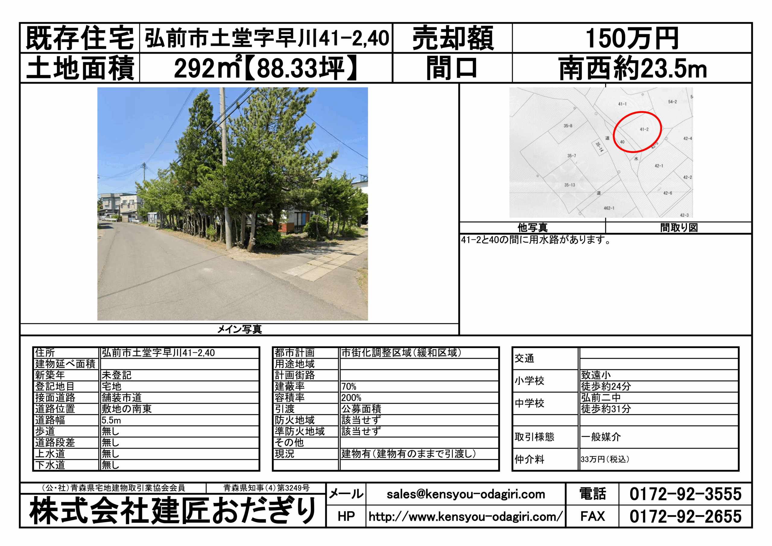 住所 | 弘前市土堂字早川41-2,40 | 都市計画 | 市街化調整区域(緩和区域) | 交通 | ||||||||||||||||||||||||||||||||||||||||||||||
